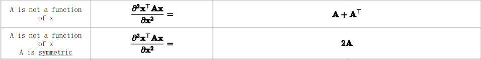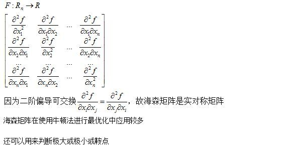 5.海森矩阵。上面的矩阵微分均为多元一阶微分,海森矩阵为多元二阶微分。