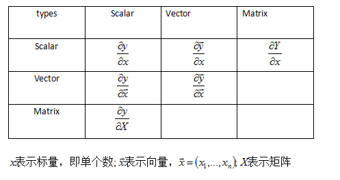 向量或矩阵微分类型