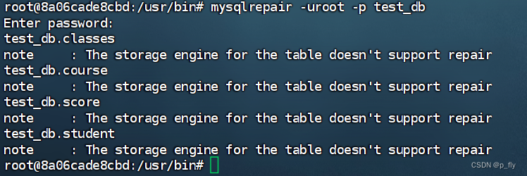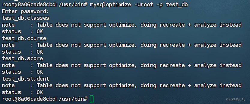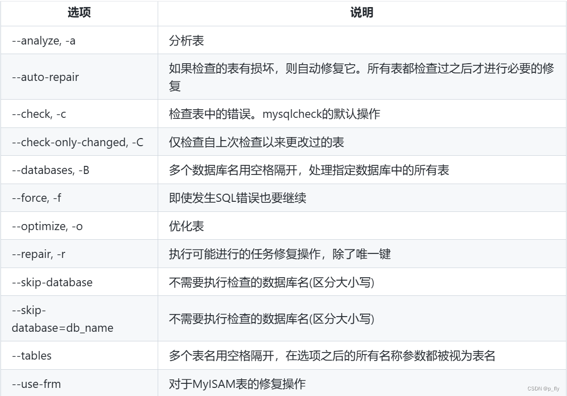 官方文档:MySQL :: MySQL 8.0 Reference Manual :: 6.5.3 mysqlcheck — A Table Maintenance Program