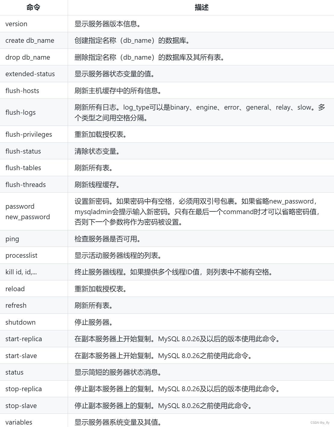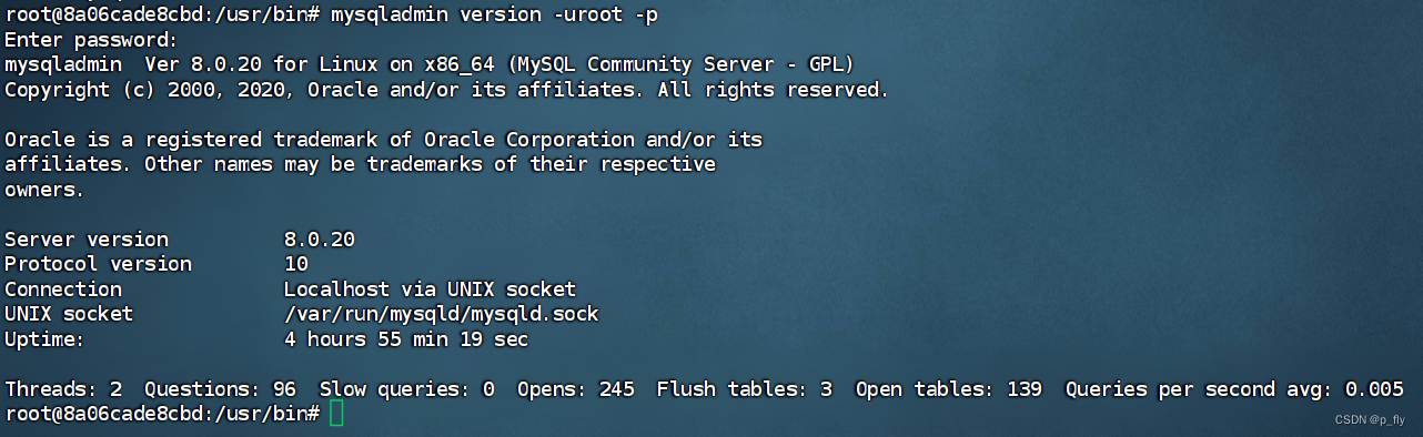 官方文档:MySQL :: MySQL 8.0 Reference Manual :: 6.5.2 mysqladmin — A MySQL Server Administration Program