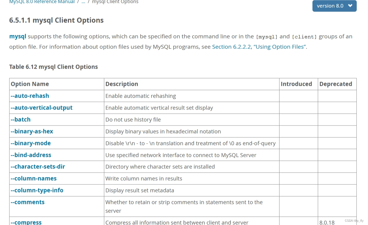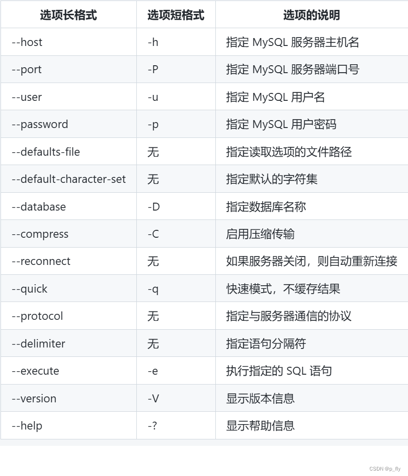 官方文档:MySQL :: MySQL 8.0 Reference Manual :: 6.5.1.1 mysql Client Options
