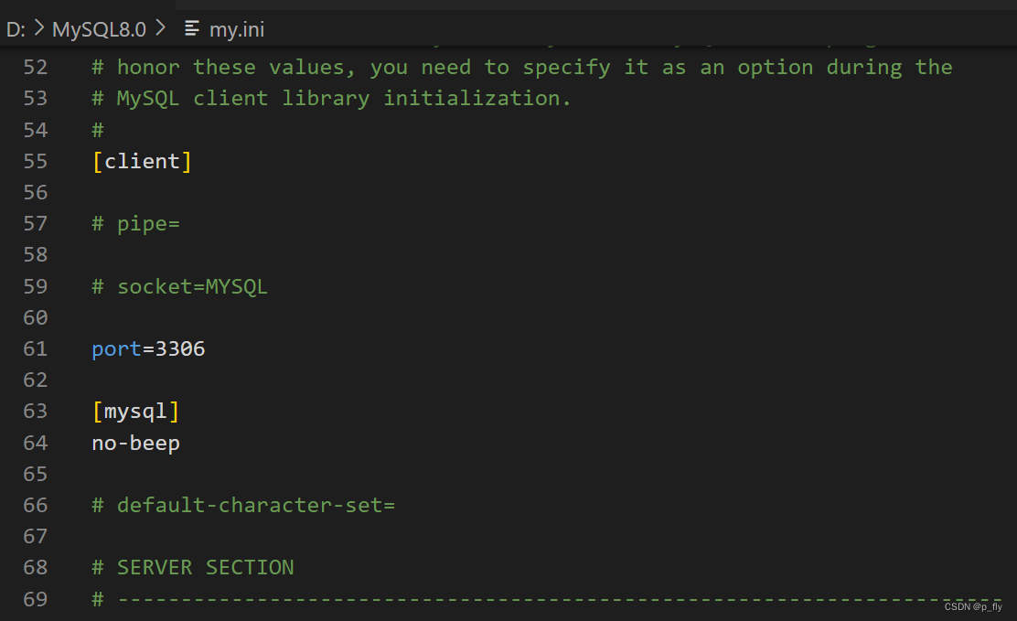 只会读取包含文本中当前客户端的组配置,例如当前运行的是 mysql 程序,那么只会读取 [mysql] 组中的选项配置。