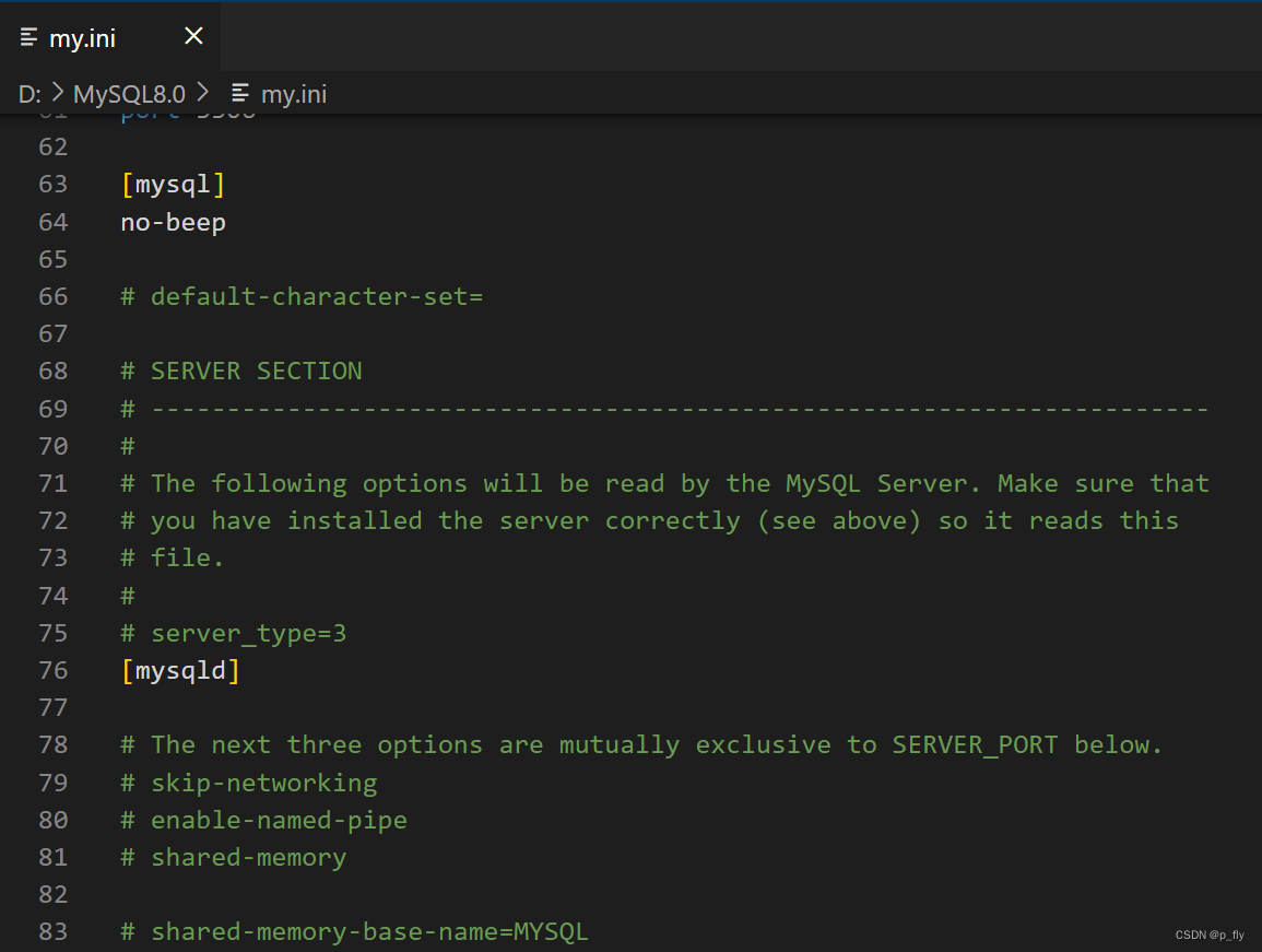 使用文件的方式读取选项时,mysqld是从 [mysqld] 和 [server] 这两个节点中读取选项的。