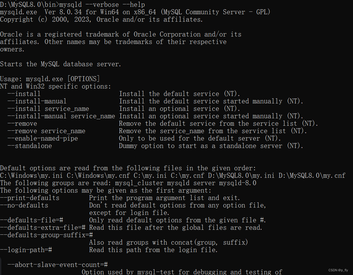 mysqld --verbose --help