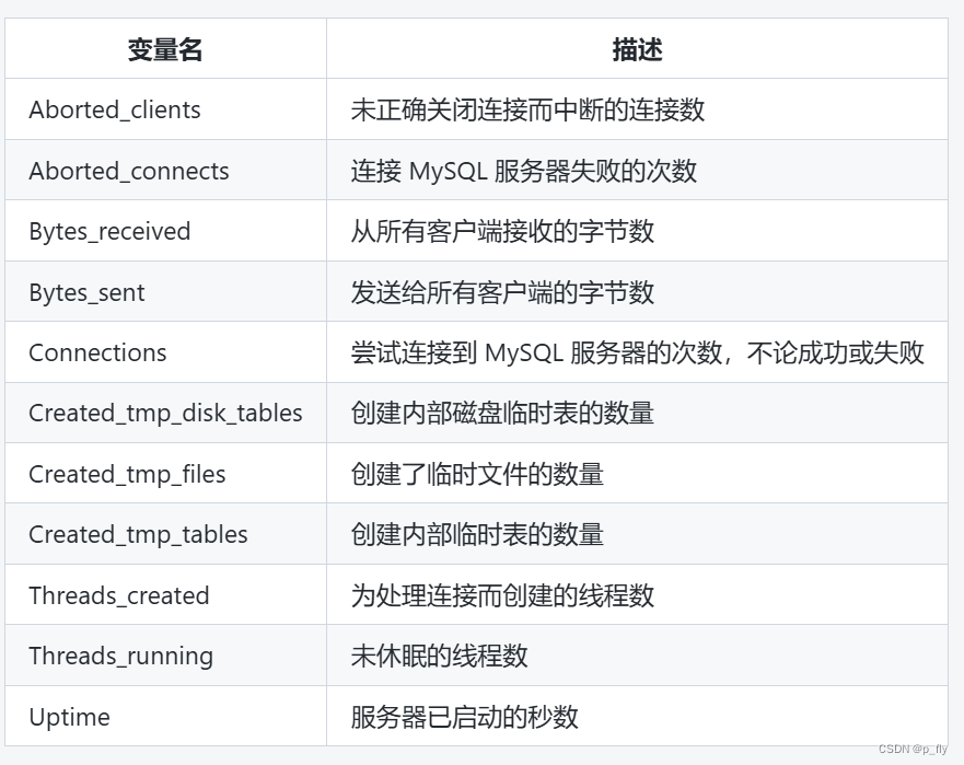 官方文档:MySQL :: MySQL 8.0 Reference Manual :: 7.1.10 Server Status Variables