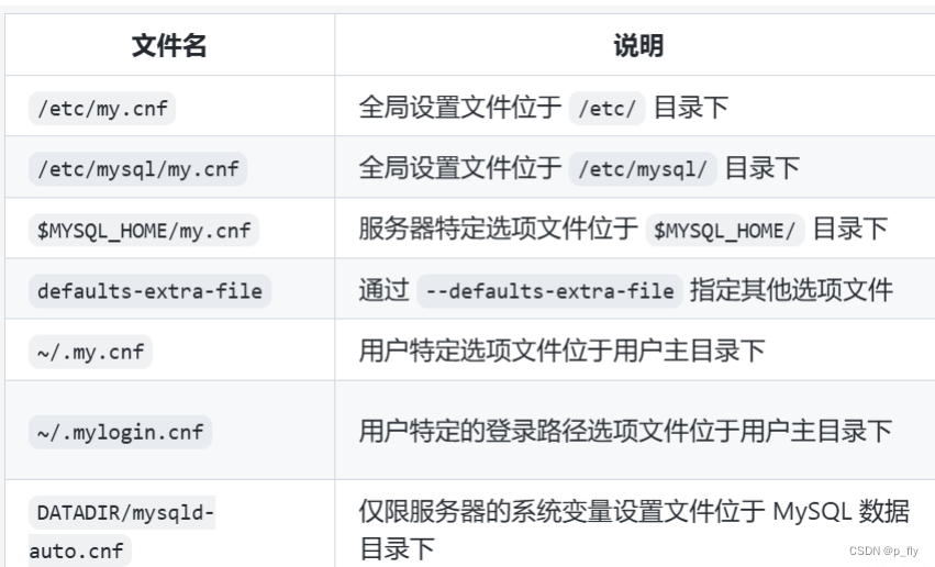 如果mysqld启动时如果没有用--defaults-file 来指定配置文件,那么就是按照表格由上至下依次查找配置文件。后面的配置文件会把前面的覆盖掉(如果有相同的配置)。
