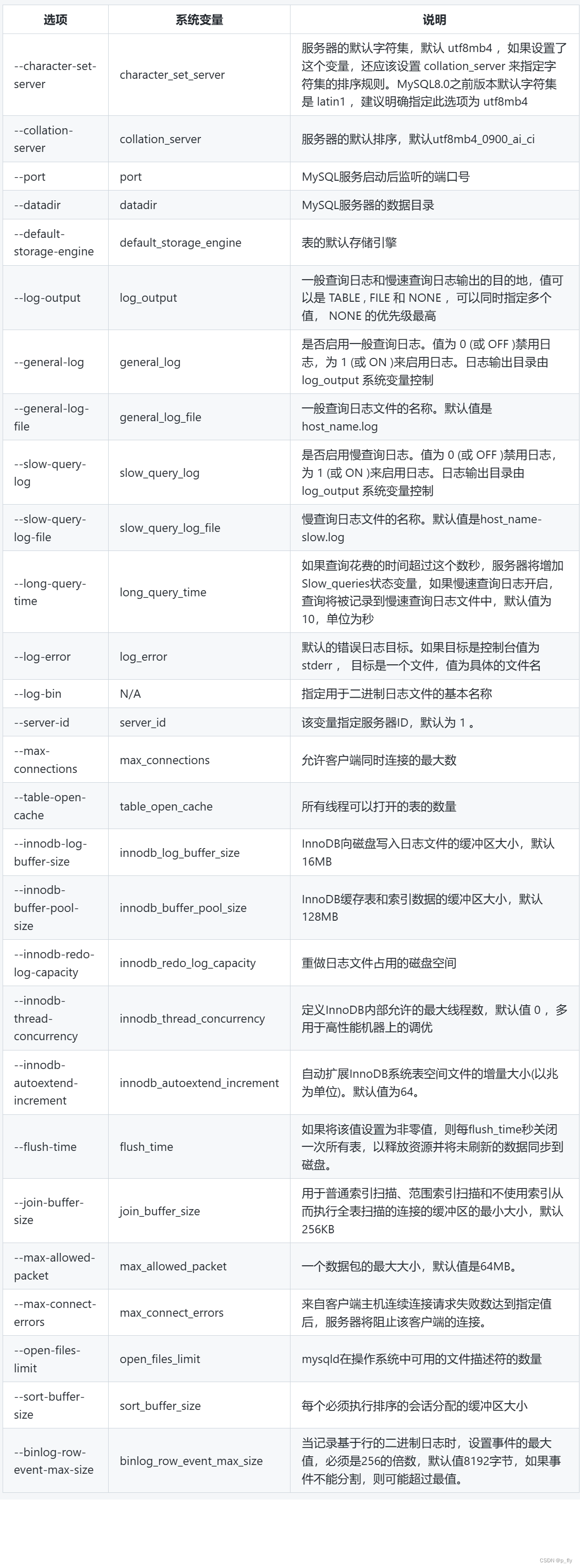 服务器启动选项:可以在命令行和配置文件中指定,用于配置服务器的行为和特性。
