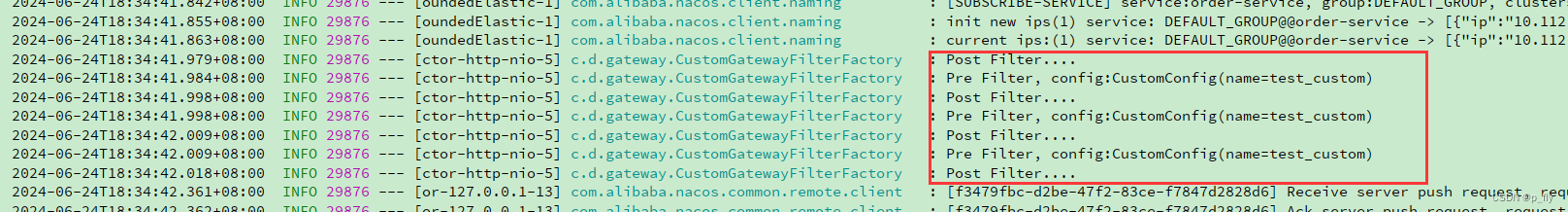 类名统一以 GatewayFilterFactory 结尾,因为默认情况下,过滤器的 name 会采用该定义类的前缀。这里的 name=Custom(在 yml 配置中使用)。
