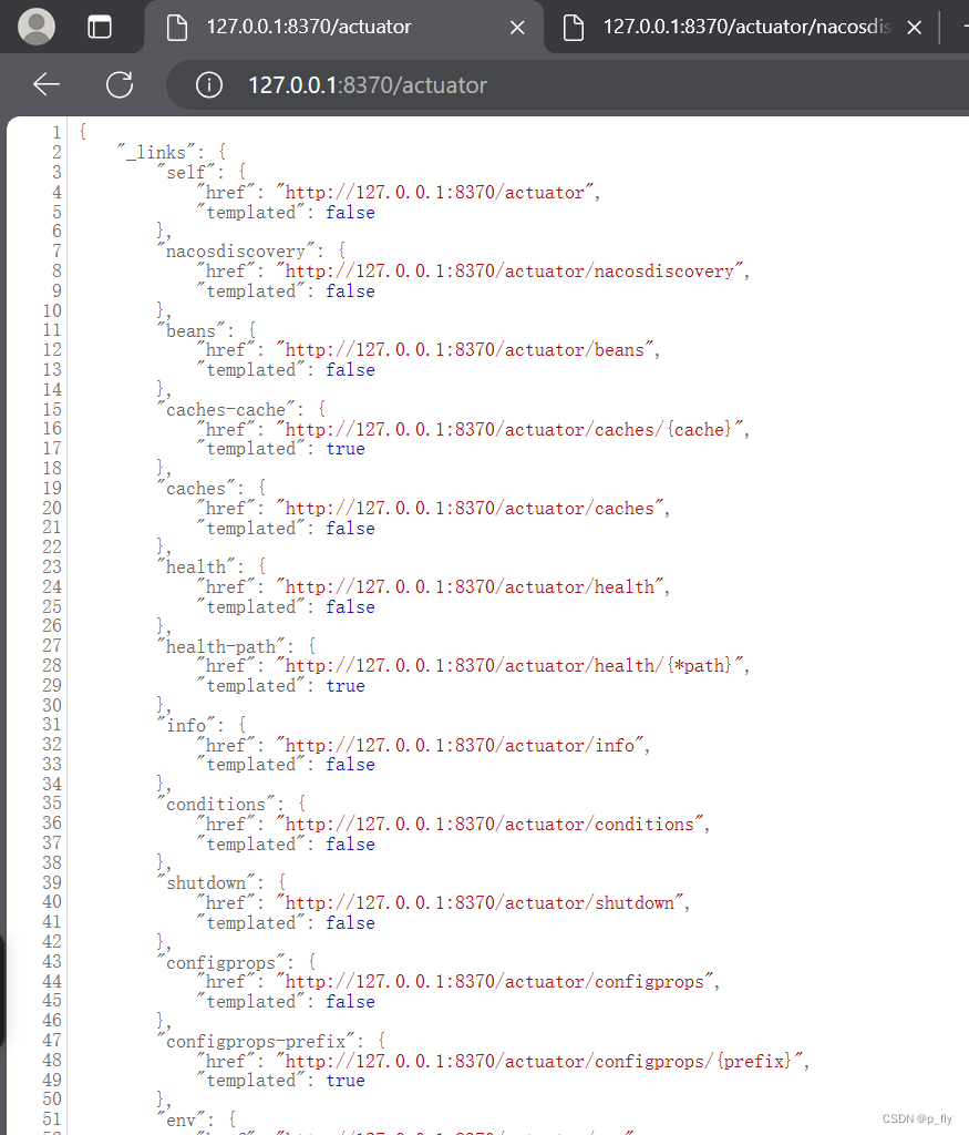 显示所有监控的信息链接:访问127.0.0.1:8370/actuator,也能点进去具体看看