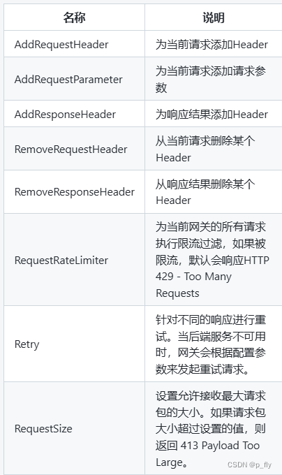 Gateway Filter Factories(网关过滤器工厂) 是用来定义网关过滤器的工厂类,用于在请求处理前后添加逻辑。在Spring Cloud Gateway中,网关过滤器可以分为两种类型:Pre类型和Post类型。