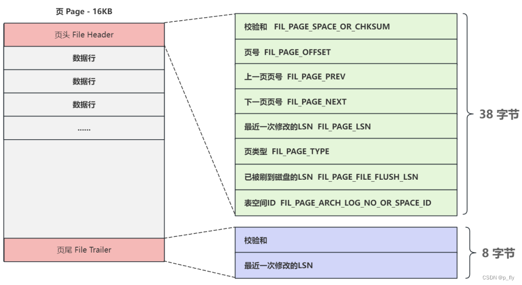 校验和:FIL_PAGE_SPACE_OR_CHKSUM,用于页的完整性校验。