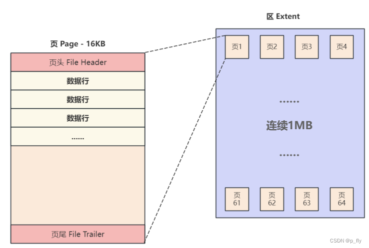 - 在一个区中,如果是相邻页,磁盘是顺序I/O的,这样读取会很快。