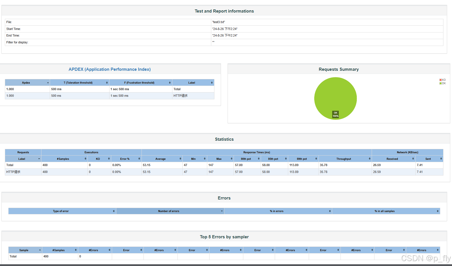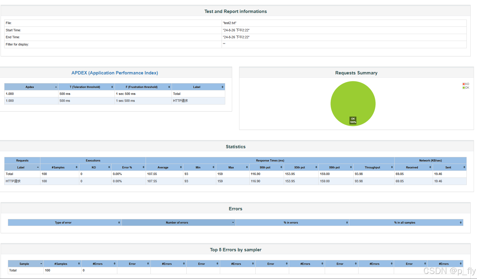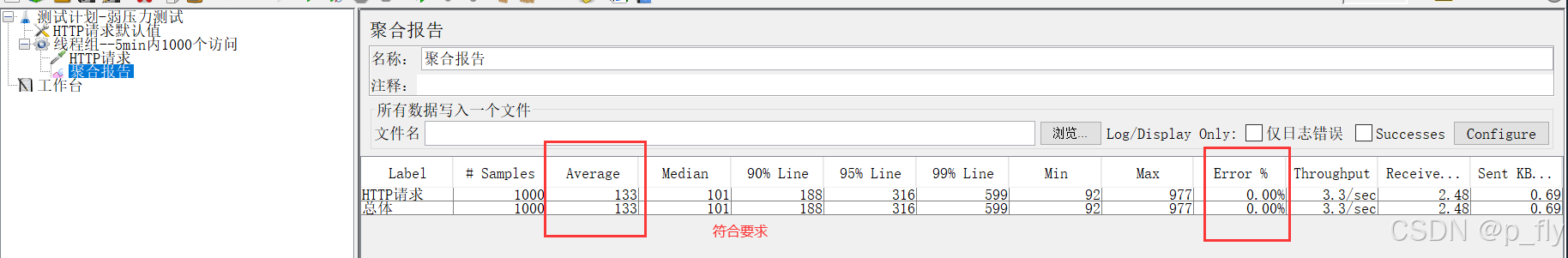 模拟 100 个用户同时访问服务器资源,要求平均响应时间在300ms内,且错误率为0。
