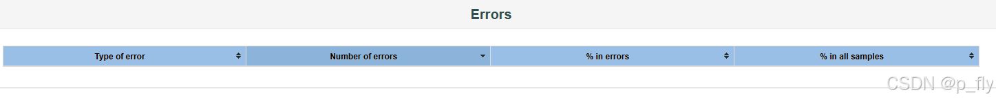 错误表提供了所有错误及其在总请求中所占比例的摘要。Errors: 错误情况,依据不同的错误类型,将所有错误结果展示。