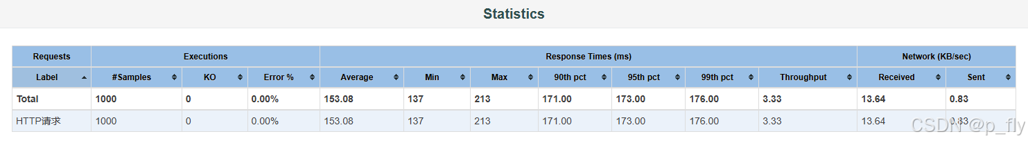 统计,类似于聚合报告。统计表在一个表中提供每个事务的所有指标的摘要,包括3个可配置的百分位数。Statistics: 数据分析,基本将 Summary Report 和 Aggrerate Report 的结果合并。和聚合报告差不多。