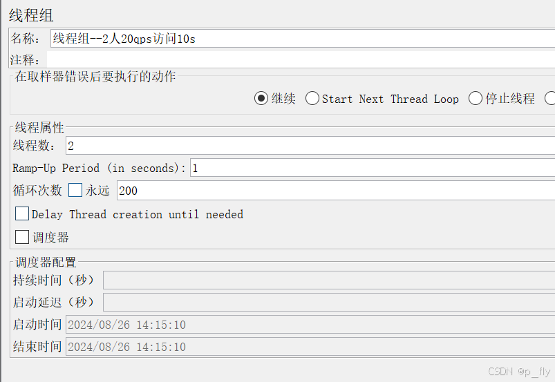 模拟2个用户以20QPS的频率访问服务器资源持续10秒,要求平均响应时间在300ms内,错误率为0。