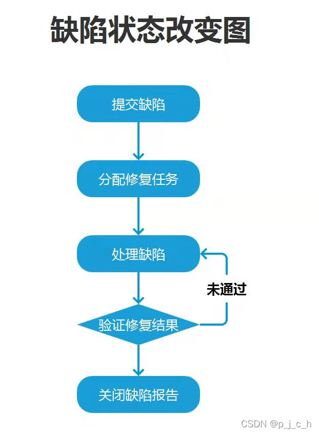 提交 --> 分配 --> 确认 --> 拒绝/延期 --> 处理 --> 复测 --> 关闭