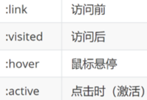 伪类选择器:伪类表示元素状态,选中元素的某个状态设置样式。