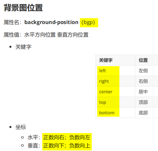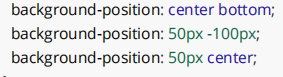 空格隔开,只写一个关键字,另一个默认居中;数字只写一个值表示水平方向,垂直方向为居中