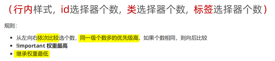 (选中标签的范围越大,优先级越低)color:red !important(添加到属性后 慎用)