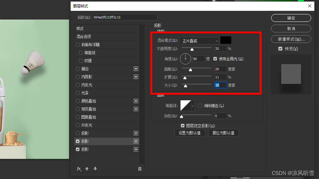 三、调整参数,可以看效果决定(距离是高度,扩展是浓度,大小是模糊程度),保存即可