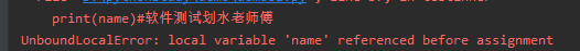 该错误是由局部变量遮蔽局部变量导致的,在testinner()函数中定义的name局部变量遮蔽了它所在test()函数内的name局部变量,因此导致程序中第6行代码报错。