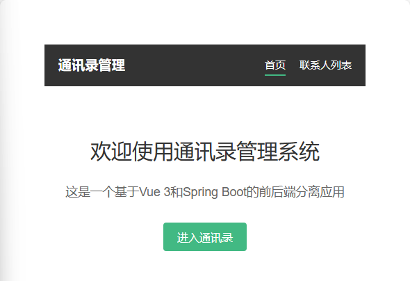 首先实现了基于 Vue 3 的前端界面与 Spring Boot 后端的协同开发,使用 Composition API 与 `<script setup>` 语法实现组件逻辑的高效管理,通过前端表单验证(如手机号格式校验、非空检查)结合后端参数合法性校验(姓名、手机号规则验证),确保用户输入数据的合法性。拓展了通讯录的核心功能,添加了操作结果提示(成功/失败弹窗)、删除确认对话框、加载状态等交互元素,提升了用户体验。后端采用 Spring Data JPA 与 MySQL 实现数据持久化,无需依赖轻量数据库,简化了数据管理流程。 最终实现了一个功能完整(支持联系人添加、删除、编辑、列表展示)、交互流畅的通讯录应用,代码结构清晰(前端组件化、后端分层设计),易于维护和扩展。但项目仍存在些许不足:界面风格较为简洁,缺乏更丰富的视觉设计;功能上以基础操作为主,未拓展分组管理、搜索筛选等进阶功能。 通过本次开发,深入掌握了前后端分离架构的实现方式,学会了如何通过 RESTful API 接口实现跨域数据传输,理解了前端表单数据与后端数据库的交互逻辑,同时实践了 Vue 路由管理、组件通信及 Spring Boot 接口开发等核心技术,为后续复杂应用开发奠定了基础。