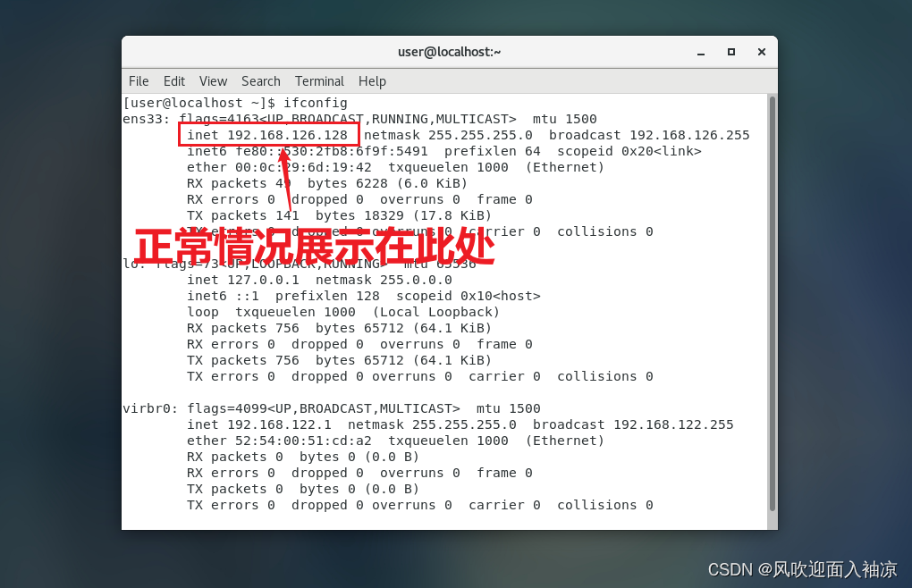 重新打开窗口后再次敲下ifconfig,出现!!!!