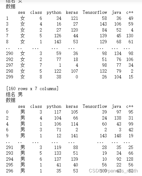 #按照sex进行单分组,这里按照sex分组,就会被分层两组
