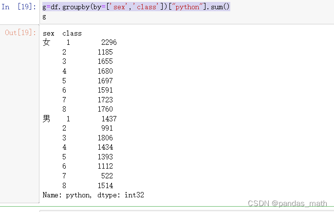g=df.groupby(by=['sex','class'])["python"].sum()