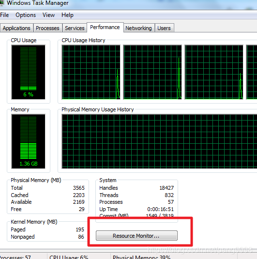 直到今天,笔者急用visio,于是决定把这问题解决了!一般来讲,笔者决定做的事情就没有办不到的(敲黑板)~~想到大量弹出窗口应该是其他进程不断调用VISIO.exe造成的,那么如何找到幕后的真凶呢?聪明的笔者想到这样一个思路:可以在无限弹窗的时候,看看哪个进程占用cpu高,说不定就能够发现可以进程了!二话不说,打开任务管理器,切换到性能,然后打开资源管理器