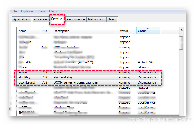 可以看到和DcomLaunch相关的就三个,Power(电源)、PlugPlay(插入播放)这两个服务一看就不像可疑服务,那唯一可疑就是DCOM Server Process Launcher这个服务了!win+r输入service.msc打开服务,定位到该服务。