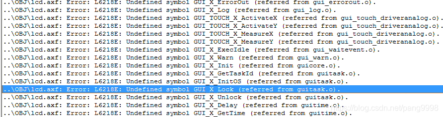 ..\OBJ\lcd.axf: Error: L6218E: Undefined symbol GUI_X_ErrorOut (referred from gui_errorout.o).