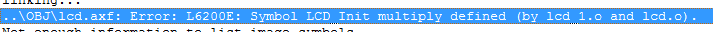 ..\OBJ\lcd.axf: Error: L6200E: Symbol LCD_L0_Off multiply defined (by lcdwin.o and lcdlin.o).