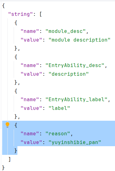 在Module.json5中进行权限管理,这里我们添加的话筒权限和文件管理权限,注意"reason": "$string:reason",使用本地枚举数据