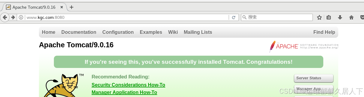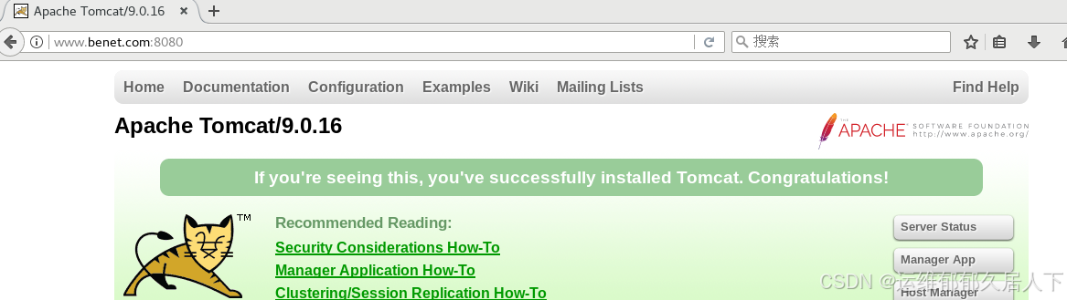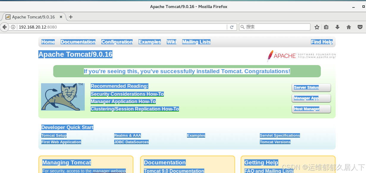 浏览器访问Tomcat的默认主页 http://192.168.20.12:8080