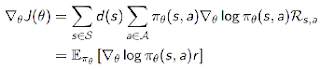 - 设J(θ)为任意一个策略的目标函数,policy gradient method通过沿着策略梯度的方向调整θ来寻求J(θ)的局部极大值:
