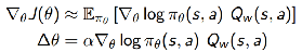 - Critic:参数为 w ,估计Actor的动作价值函数