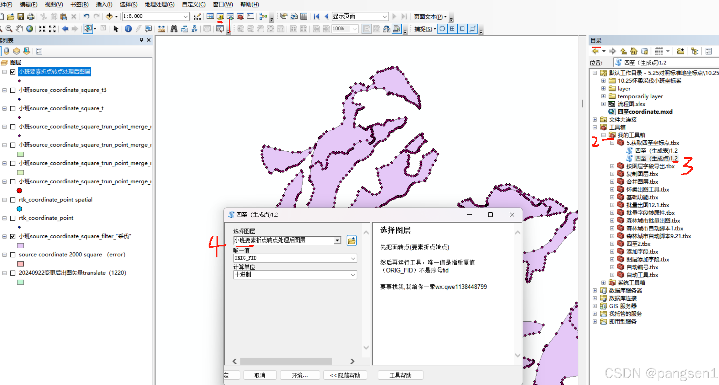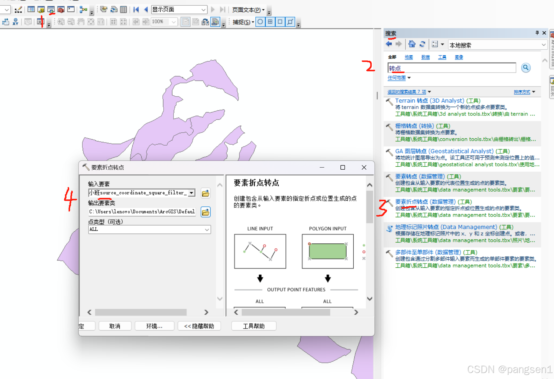 6.处理图层.找到(要素折点转点)工具并处理图层.