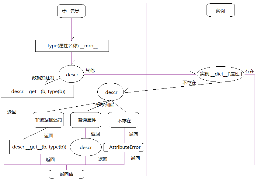type(b).__mro__,直到找到该属性,并赋值给descr。 - 判断