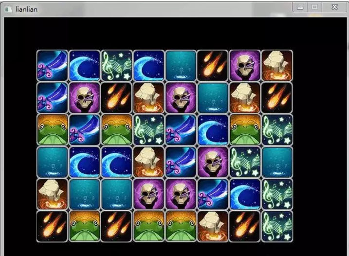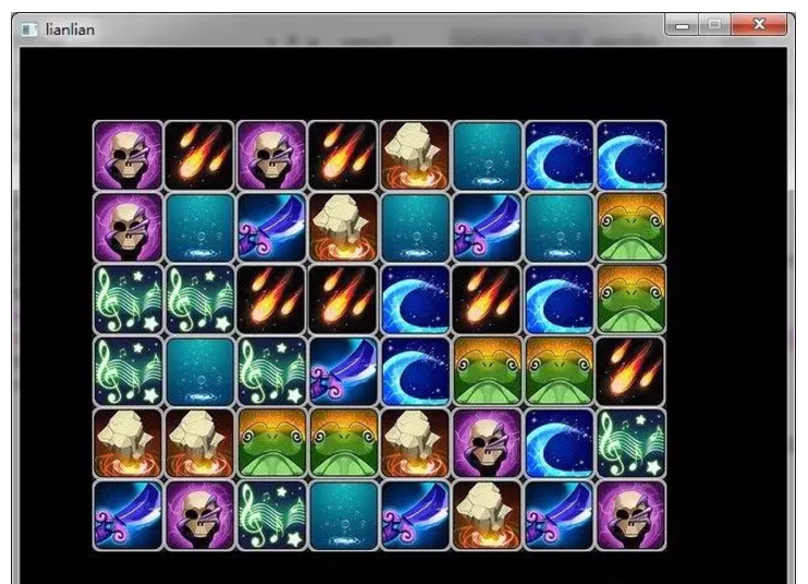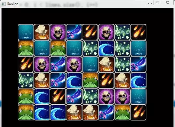 接下来要初始化数据,我打算用8种不一样的图片,每种6张,随机放入矩阵中,矩阵最外一圈是空的。这个算法可以用标准库函数 std::random_shuffle 来完成。
