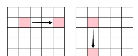 这两种情况很容易处理,横向、竖向依次检查每个格子是否被阻挡即可。