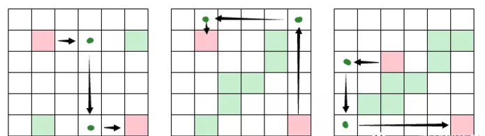 转折两次的情况就多了,下图同样是连接红色图片,要绕过绿色图片。