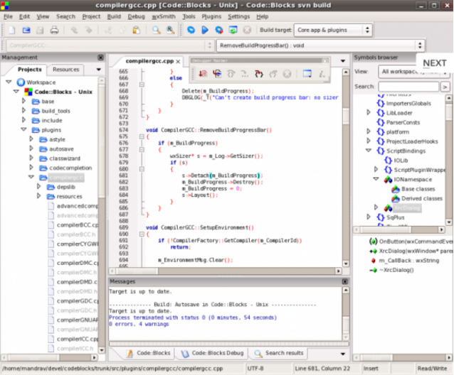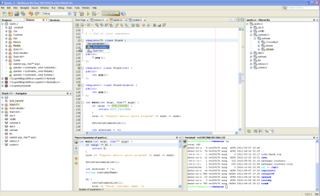 Netbeans 工具包括大量的 C 和 C++ 的适用的项目类型模版,可以使用动态和静态库去创建 C/C++ 应用。它包括了一系列的特性,得到了广大程序员的喜爱: Code assistance,编译器配置,单元测试,source inspection,远程开发和文件导航等等。