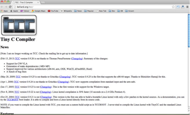 Tiny c compiler 是最好的 C 语言编译器之一,它有许多让开发者惊讶的功能,可以在任何地方编译源代码,可以使用任何 C 动态库,可以直接编译和执行 C 源代码,包括完整的 C 预处理器和 GNU 类的汇编程序。