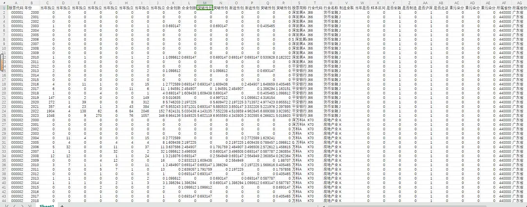 突破性创新3:发明申请*0.5+实用申请*0.3+外观申请*0.2进行加总,再加一取自然对数
