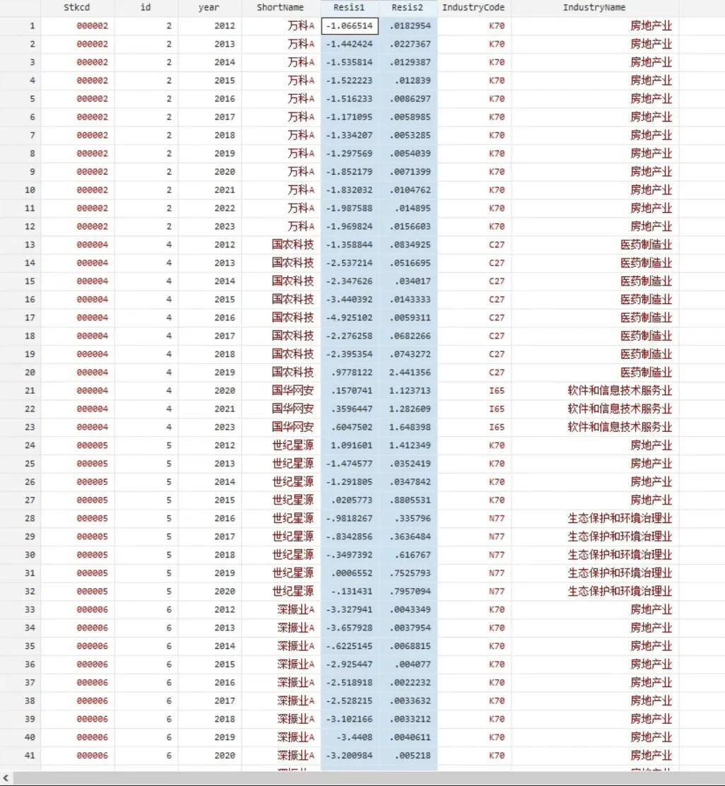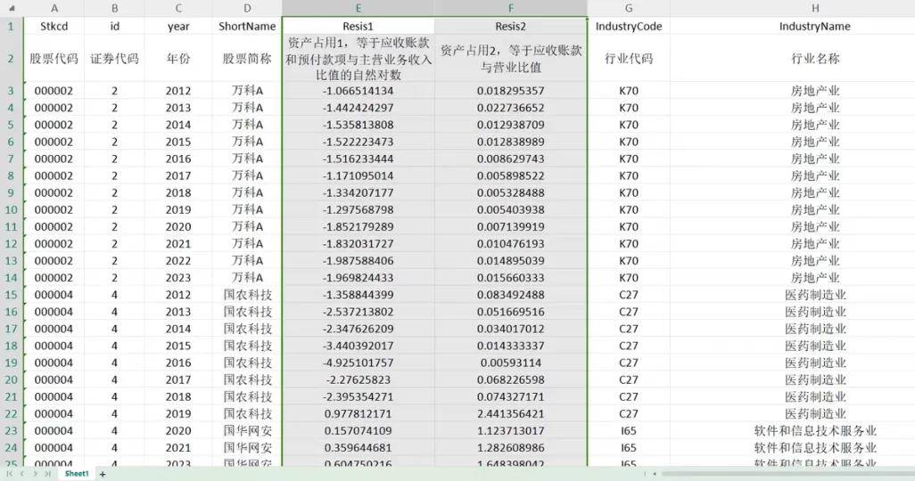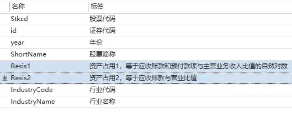 Resis2:资产占用2,等于应收账款与营业比值。值越小,表明客户对供应商的资金占用越少,供应链关系的稳定性越高。