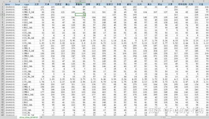 字段如下:站点编号、站点名字、所属城市、对照点、全年的空气质量数值。