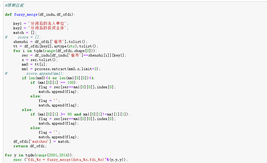 Python代码包括数据预处理,字段删减统一改名,公司名处理,模糊匹配等。