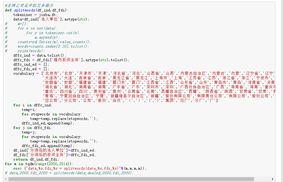 处理过程和代码展示: 首先是原始数据,包括2000-2013年工业企业数据库数据和境外投资企业(机构)名录数据。